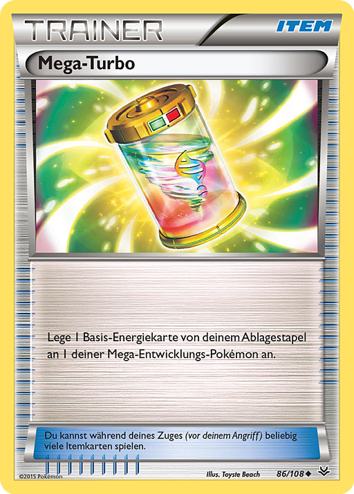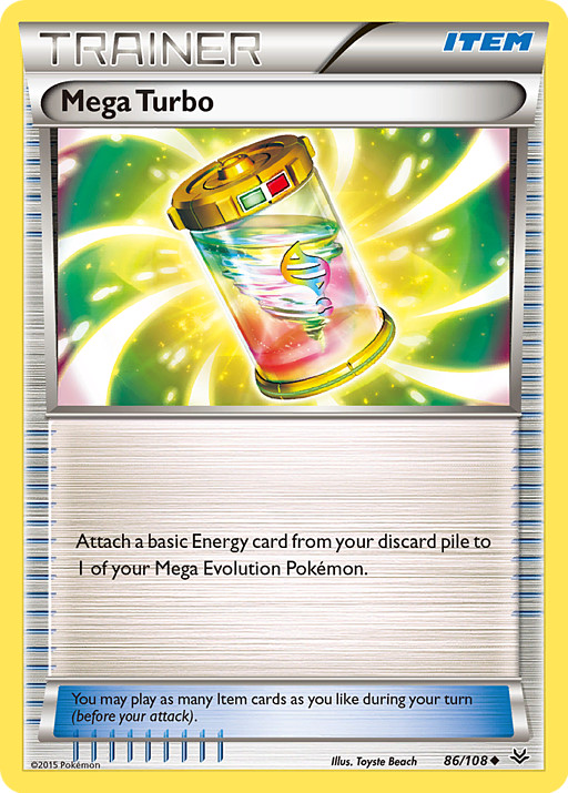 Une 1 carta de Energía Básica de tu pila de descartes a 1 de tus Pokémon Megaevolución.