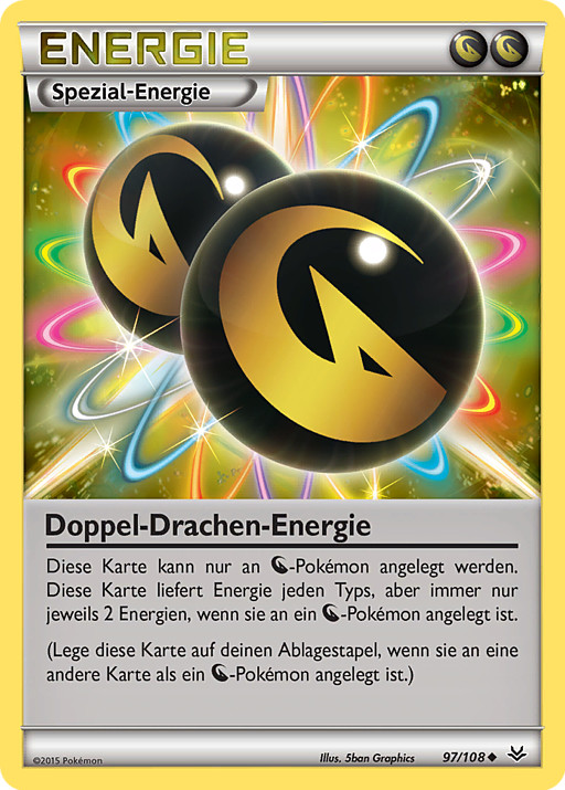 Esta carta solo puede unirse a Pokémon . Esta carta proporciona todos los tipos de Energía, pero solo proporciona 2 Energías a la vez y solo mientras esta carta esté unida a un Pokémon .