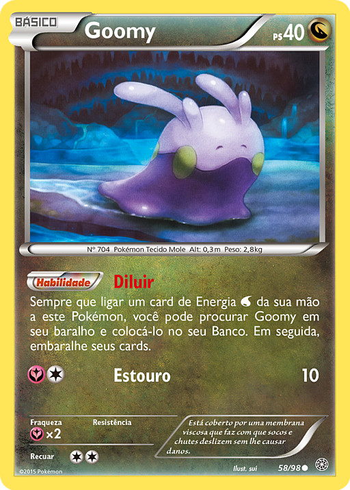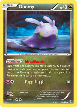 Cada vez que unas 1 carta de Energía de tu mano a este Pokémon, puedes buscar en tu baraja a Goomy y ponerlo en tu Banca. Baraja las cartas de tu baraja después.