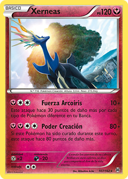 Une Energía Arcoíris a 1 de tus Pokémon. Durante el juego, la Energía Arcoíris proporciona todo tipo de Energía, pero solo ofrece 1 Energía cada vez. (No tiene ningún efecto aparte de proporcionar Energía.) Cuando unas esta carta de tu mano a 1 de tus Pokémon, pon 1 contador de daño en ese Pokémon. (Mientras no juegas, la Energía Arcoíris cuenta como Energía .)