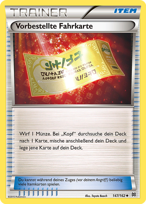 Lanza 1 moneda. Si sale cara, busca en tu baraja 1 carta, baraja las cartas de tu baraja, y luego pon esa carta en la parte superior de tu baraja.
