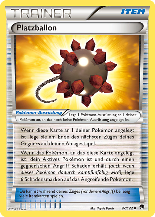 Si esta carta está unida a 1 de tus Pokémon, descártala al final del turno de tu rival.Si el Pokémon al que está unida esta carta es tu Pokémon Activo y resulta dañado por un ataque de tu rival (incluso si ese Pokémon queda Fuera de Combate), pon 6 contadores de daño en el Pokémon Atacante.