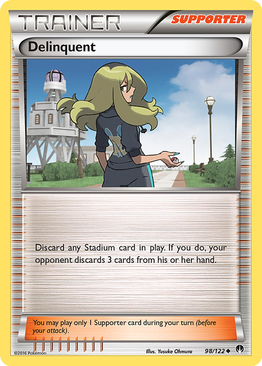 Descarta cualquier carta de Estadio en juego. Si lo haces, tu rival descarta 3 cartas de su mano.